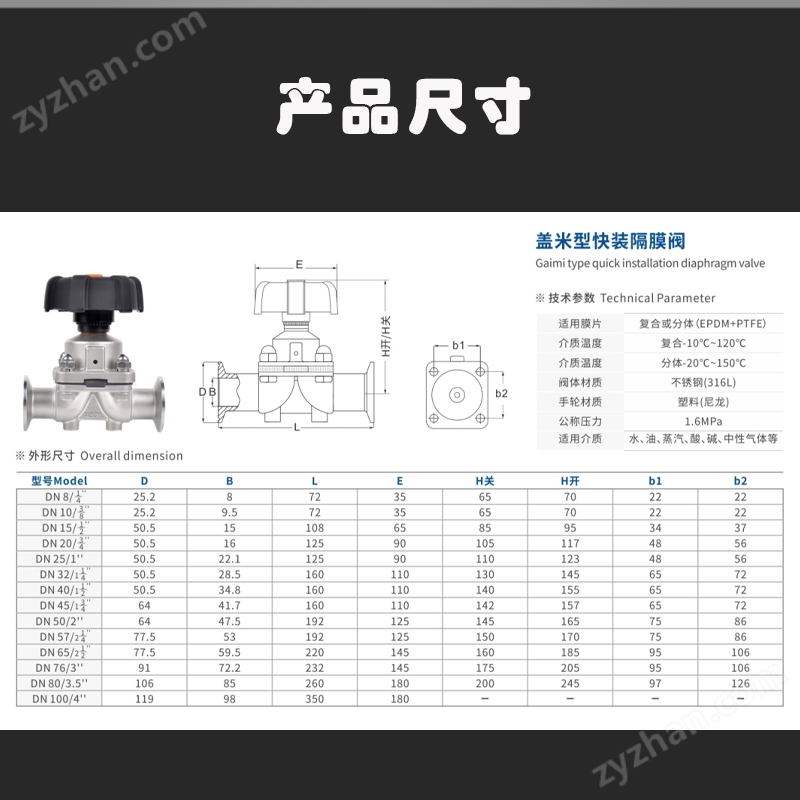 衛(wèi)生級快裝隔膜閥316L不銹鋼卡箍式快卡衛(wèi)生級快裝隔膜閥316L不銹鋼卡箍式快卡