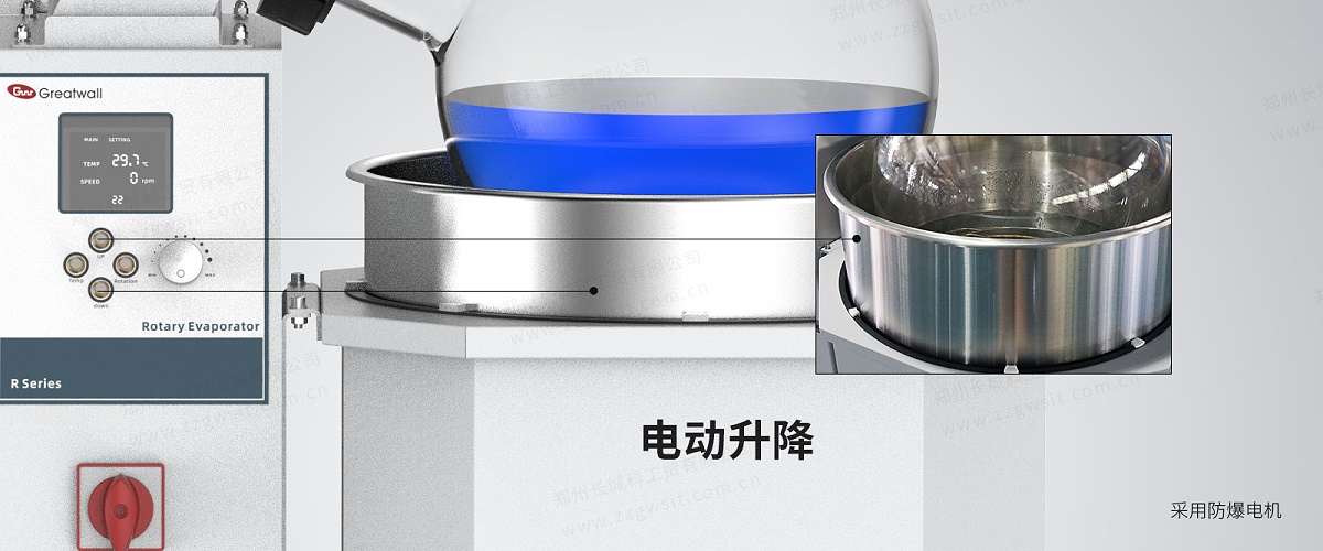 中試級(jí)防爆型旋轉(zhuǎn)蒸發(fā)儀R-2050Ex適用于生物、醫(yī)藥、化工、食品等領(lǐng)域的中試級(jí)實(shí)驗(yàn),與真空泵、循環(huán)冷卻器等冷卻設(shè)備組成配套系統(tǒng)。電機(jī)、加熱器、電氣控制箱均為防爆型,防爆標(biāo)志:ExdbIIBT4Gb,優(yōu)異的密封設(shè)計(jì),在不涂真空脂情況下,系統(tǒng)升壓速率≤2Kpa/h;自動(dòng)切換閥設(shè)計(jì),在單收集瓶配置下,可以不間斷蒸餾進(jìn)行導(dǎo)出收集瓶物料;PTFE放料閥門;玻璃組件采用快速法蘭連接,操作方便。